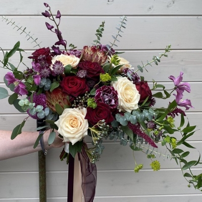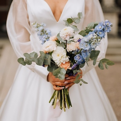 | A | Sarah McCaig says: There are two options that I always recommend to my couples. The first is a smaller bouquet. We offer a petite-style bouquet that captures the beauty and style of a standard version but is around 50 per cent cheaper. Alternatively, you could opt for a single-stem, fully blown rose or peony with trailing silk ribbons for extra detail. Alternatively, you can repurpose the bouquets and use them as centrepieces. After the group photos are taken, collect the bouquets from the bridesmaids and place them in vases on the tables. We have done this before, dressing the table with a fabric runner, tapered candles and tealight holders, then placing the bouquets in vases. No one will know the difference! You can also use these on the top table or as additional décor throughout the room. |