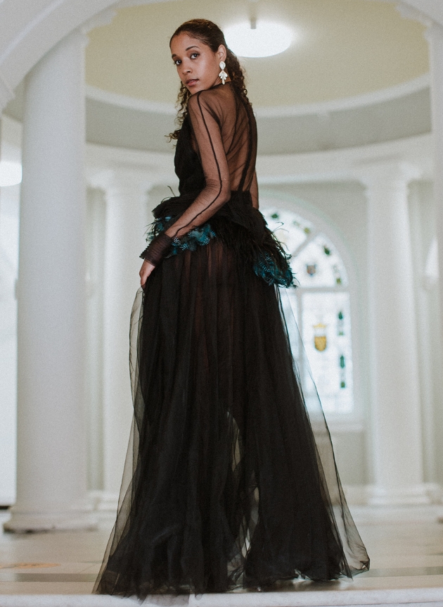 • Think feather dress up pieces that can be easily added to your dress to keep you warm outside.