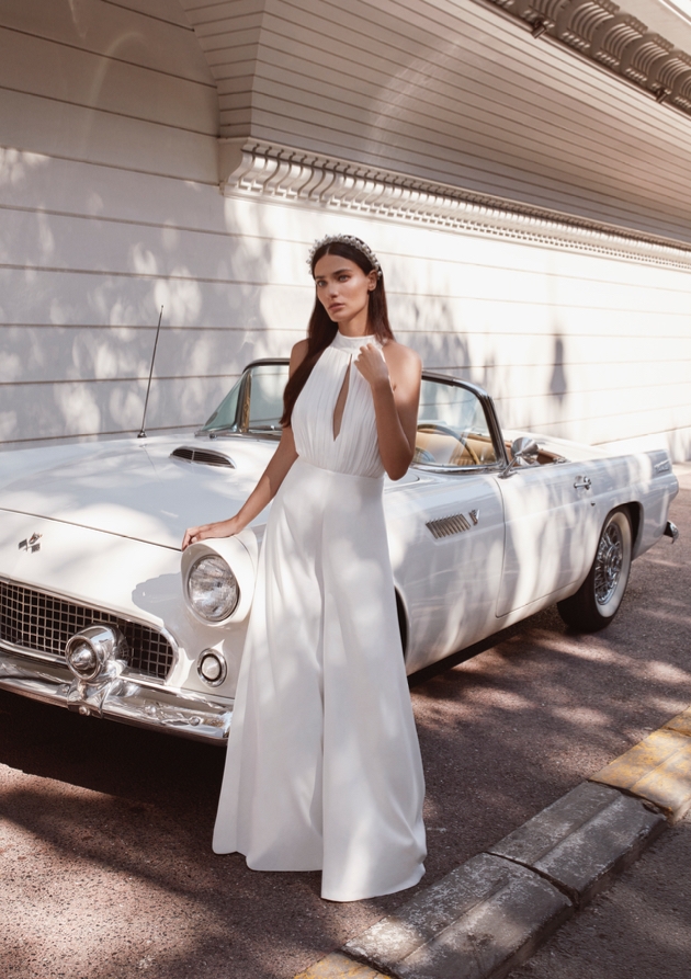 Jump to it in this wide-legged bridal jumpsuit from bridal and eveningwear designer https://rowleyhesselballe.com
