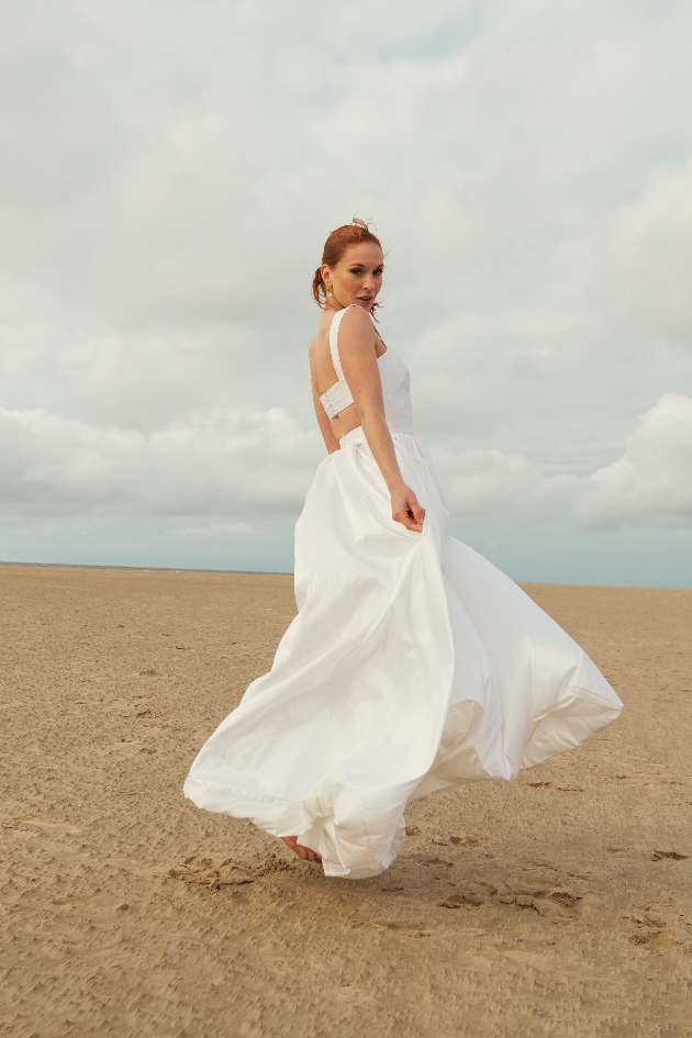 Grace Loves Lace has launched its Memoirs Of Her collection for 2023 of eight made-to-order and ready-to-wear gowns priced between £1,200 and £2,500 plus two intricately embroidered veils. It features silhouettes made with a new 100% recycled eco lace, exclusive to the Australian based-brand are committed to ethical and sustainable manufacturing with all gowns made in Australia. Always pushing boundaries, the brand has launched the first-ever wedding dress using lycra swimsuit material to hug and shape the body. Megan adds, "We wanted to introduce a completely unpredictable fabric in this collection that makes a statement. The Zsa Zsa dress is hand-crafted from beautiful and highly visual stretch lycra. Think of a dress that makes you feel supported all over, creates the most beautiful curves and accents the body. For the fun and adventurous bride, you can even swim in it at the end of the night."