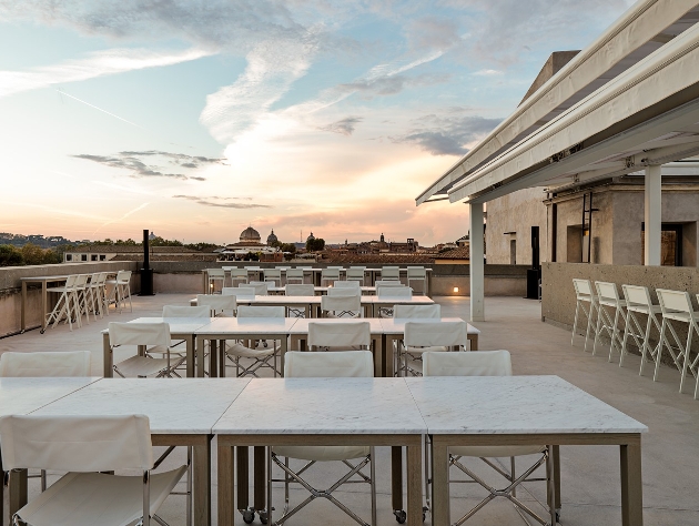 roof terrace bar white tables and chairs chic modern design