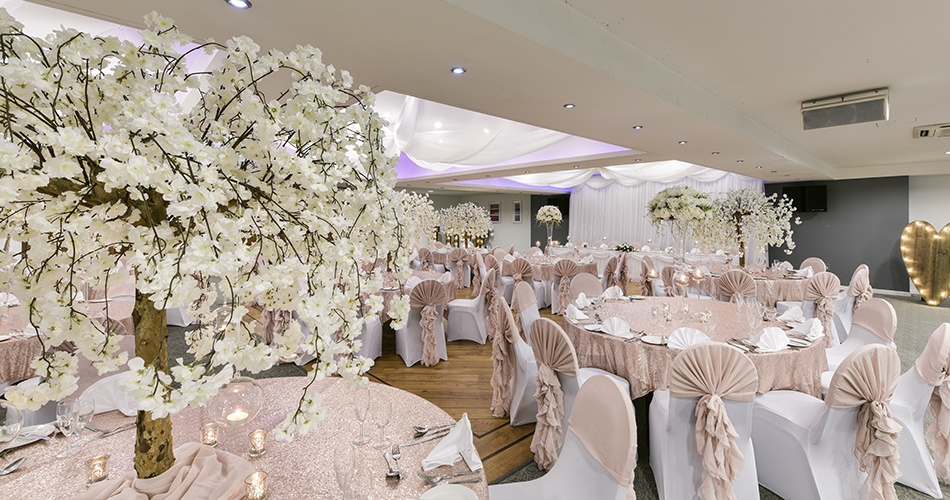 Smokies Park is licensed to perform civil wedding and partnership ceremonies in any one of our stunning wedding suites or function rooms. Our wedding breakfast suites such as the Alexandra Suite, Crompton Suite and Medlock Suite can cater for full receptions with entertainment from 30 guests up to 200 and up to 300 for an evening buffet.