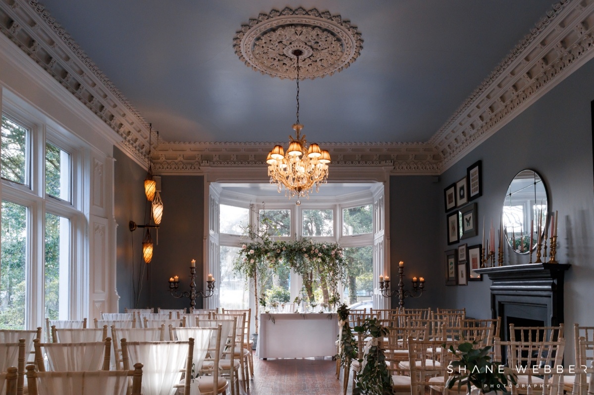 Ceremonies take place in the Blue Room. This stunning space has a large bay window, a fireplace and room for 80 guests throughout the day. Alternatively, the property can be hired exclusively for up to 120 loved ones.