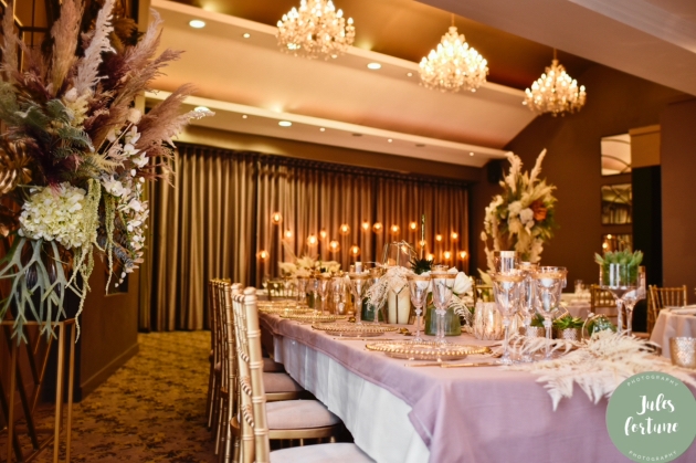 Weddings take place in the Holcombe Suite, which is the largest function room and is decorated in neutral tones with beautiful chandeliers and soft lighting. It's perfectly suited to any theme and is capable of holding 120 loved ones for the ceremony and meal and 150 for the evening celebration.