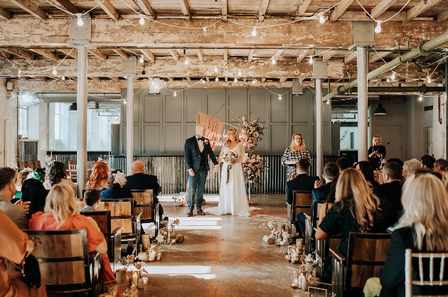 The Cotton Room at Holmes Mill is fully licensed for civil ceremonies. It’s a large, versatile space that can accommodate up to 150 guests and is later transformed for the wedding reception while guests indulge in some drinks and nibbles at the Bistro, Bar and Grill.
