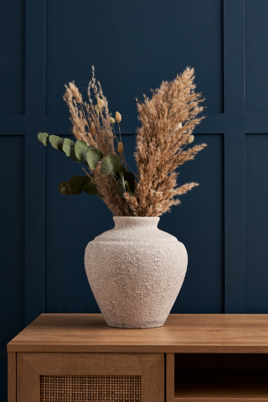 green white and blue ceramic vases Credit: Grooved Ceramic Vase in Cream, Green & Blue £18
