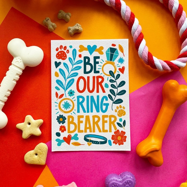 Cards such as ‘be our ring bearer’, ‘be my best man’, and ‘be my bridesmaid’, have been created to help owners create a sense of occasion as they invite their four-legged family member to play a key part in their special day.