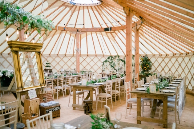 In addition to the yurt, you’ll have exclusive use of the entire inn, including the cosy bar and lounge area, a full gastro kitchen for your caterers and beautiful gardens perfect for capturing those special moments. The team also offers luxurious accommodation for up to 40 loved ones in the eight boutique bedrooms, four glamping yurts and two shepherd huts.