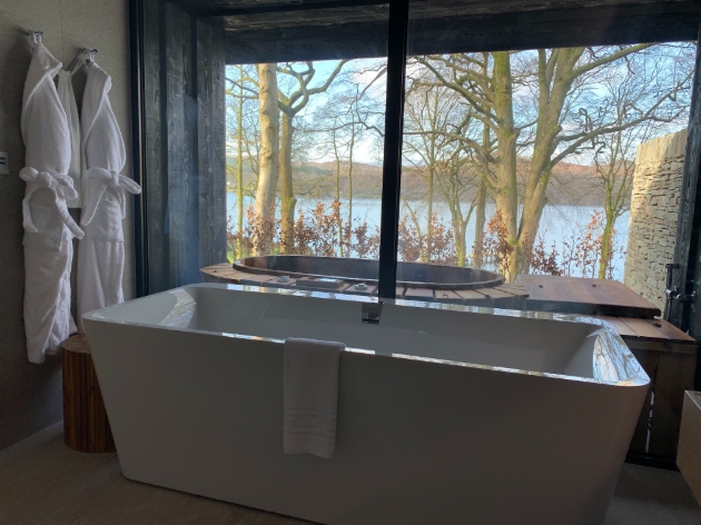 The Lakeside Suites are self-contained, set apart from the Main House, on a rocky outcrop with the waters of England’s largest lake just a dawdle away. Vast in size, with sliding glass walls to make the most of the breathtaking views over the lake or wild woodland, each suite comes complete with its own private terrace with loungers and a Japanese-style cedar wood hot tub.