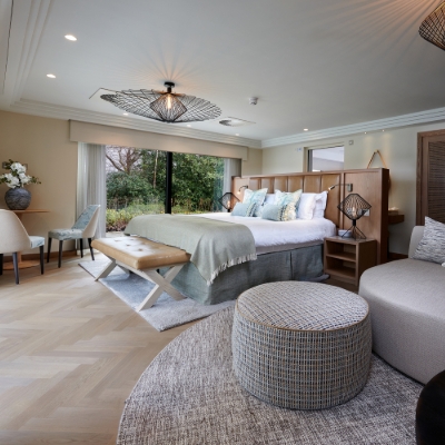 The main building showcases traditional architectural elements, while the interiors provide cosy, contemporary touches. The 64 spacious guest rooms and suites are perfect for a relaxing break away. The hotel's ongoing transformation includes a newly opened spa, gym facilities, and renovated interiors, with 54 cottages set to debut in the spring of 2025. The new spa offers a sanctuary where couples can unwind in thermal saunas, a hydrotherapy pool and a luxurious spa pool. A wide selection of rejuvenating Temple Spa treatments has been carefully curated to promote relaxation and wellbeing, while the gym is designed to meet the fitness needs of all its guests.